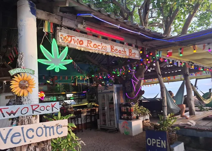 Los huéspedes pueden descansar en el bar lounge del establecimiento con su bebida favorita. El restaurante I Love Sushi se encuentra a un corto paseo del hotel Two Rocks Bungalows Baan Tai.